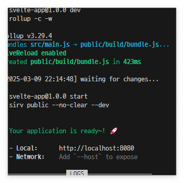 http://localhost:8080 에 Ctrl + 마우스 클릭을 해보면 브라우저에서 실행되는 스벨트를 볼 수 있다.