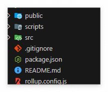 위 명령을 실행하면 아래와 같이 스벨트에서 필요로 하는 기본적인 파일, 폴더들이 복제된다.