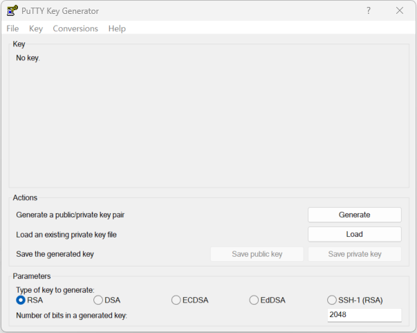 PuTTY를 설치하면 PuTTYgen 프로그램을 실행한다.